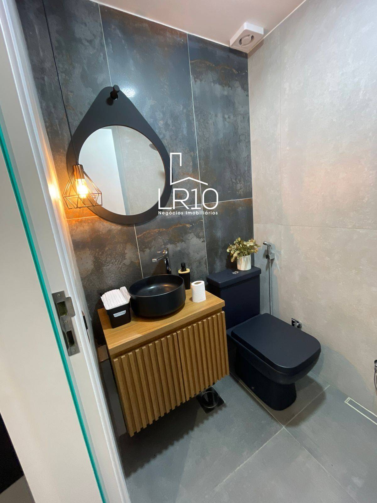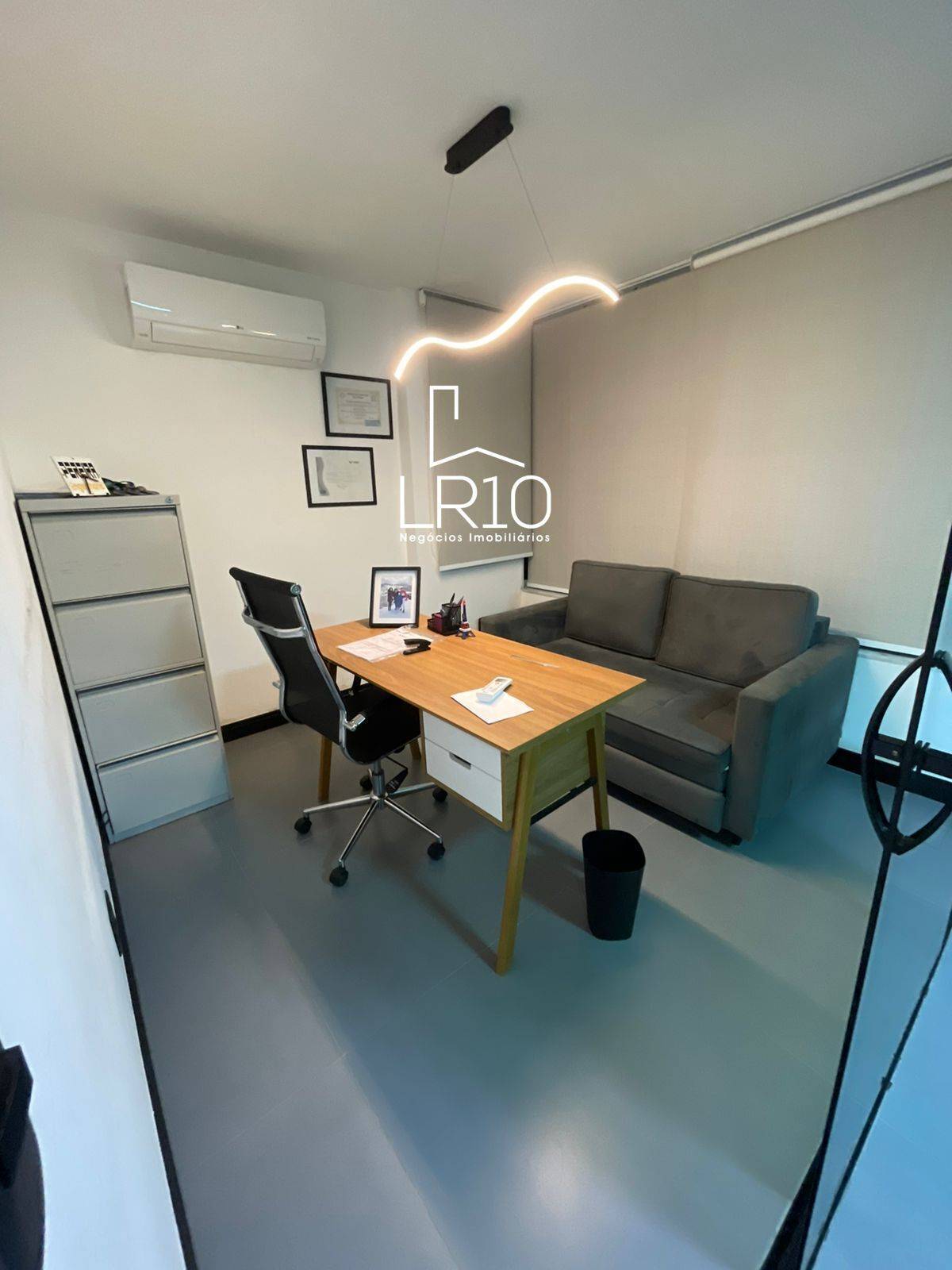 Piso em porcelanato, iluminação LED embutida, ar-condicionado split e persianas blackout.